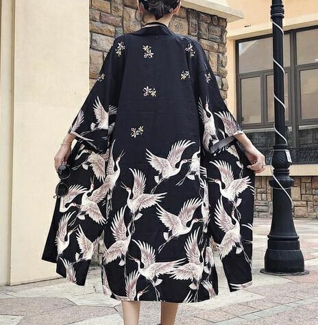 【メール便送料無料】和柄プリント マキシ丈 ロングカーディガン サイドスリット入り(ブラック)長袖 結婚式 ボレロ パーティー 七分袖 二次会 ドレス キャバ 羽織り ロングカーディガン 花柄